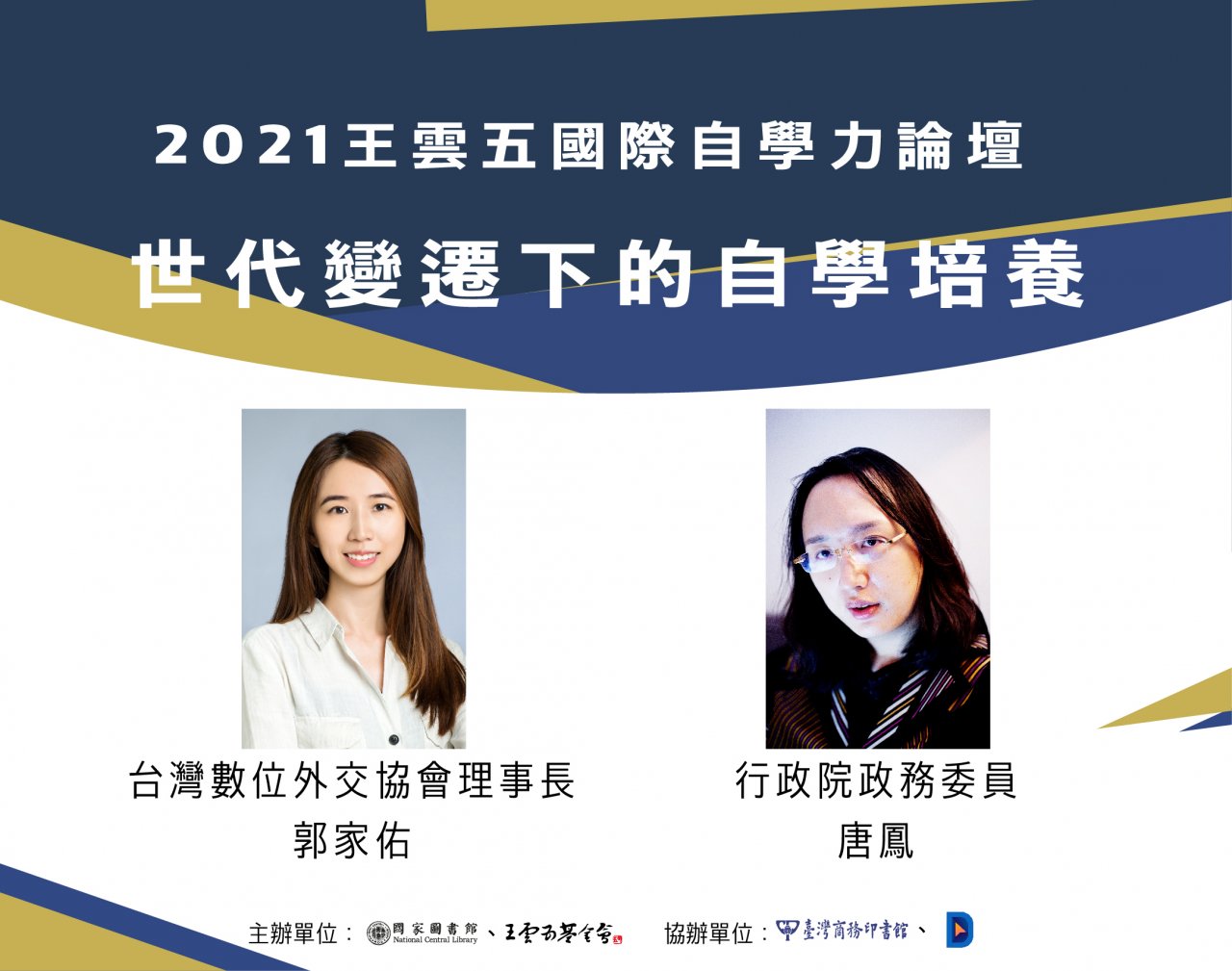 二、旨揭論壇將於11月5日(星期五)下午1時30分至5時,假國家圖書館藝文中心3樓國際會議廳舉辦,邀請台灣數位外交協會理事長郭家佑小姐與行政院政務委員唐鳳委員發表演說(如附件1),分享自學歷程。